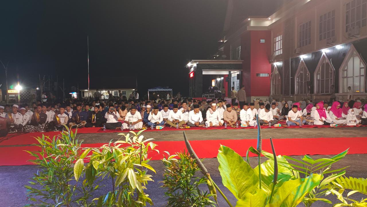 Acara ketiga di Kapolres. Saya tahu Kapolres Meranti sangat akrab dengan kalangan ulama, kiai dan ustadz serta kalangan santri. Kadang saya ngopi bareng, makan bareng di acara-acara non-formal. Namun kadang terlalu akrab sampai tidak mengenal istilah-istilah kesantrian. Kata-kata seperti, “al-mukarom” berubah menjadi “al-muharom”, pemimpin istighosah itu bukan jabatan, berubah menjadi jabatan baru, “pimpinan istighosah”, yang kebetulan Kiai Mardio Hasan adalah Ketua Baznas. Namun esensi keakraban yang dibangun oleh Kapolres Kepulauan Meranti cukup sukses. Acara ini cukup meriah, selain santunan anak yatim dari ibu-ibu bayangkari, ada acara sholawatan. Jadi suasana Kapolres berubah seperti suasana pesantren yang sedang melaksanakan acara imtihan atau acara-acara khas pesantren lainya. Entah gimana ceritanya, ditambah momen lucu Bupati Kepulauan Meranti. Saat memberi sambutan, bupati Muhammad Adil mengatakan bahwa pak Andi Yul sudah mirip seorang, “kiai”. Sontak semua tertawa. Mungkin ini juga pengaruh karena sering kumpul dengan para kiai dan ustadz, jadi dia terbawa cara bicaranya agak mirip-mirip nasehat yang diberikan para penceramah.